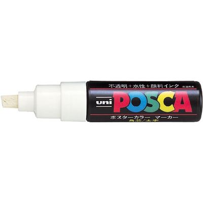 ポスターカラーのように鮮やかな発色。金属、ガラス、プラスチックなどにも書けます。紙に書いてもにじみや裏うつりがなく、乾けば水に流れず、重ね描きもOK。