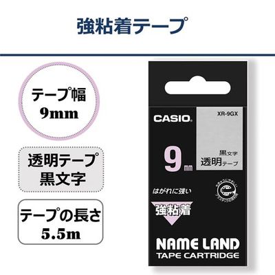 ネームランド 強粘着透明テープ 9mm 黒文字 XR-9GX
