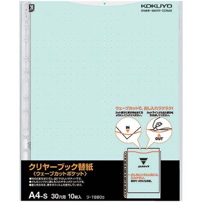 クリヤーブックウェーブカット替紙A4縦 緑10枚 ラ-T880G