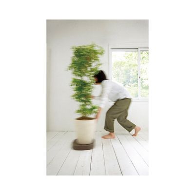 観葉植物の鉢の移動に便利なキャスター付きのトレイ。扇風機や空気清浄機を置いても使える。キャスターが見えにくくインテリアによくなじみます。
